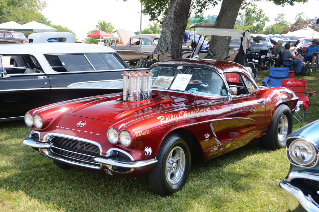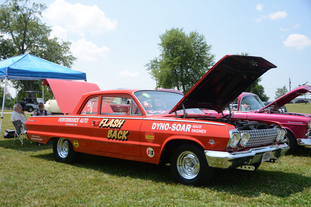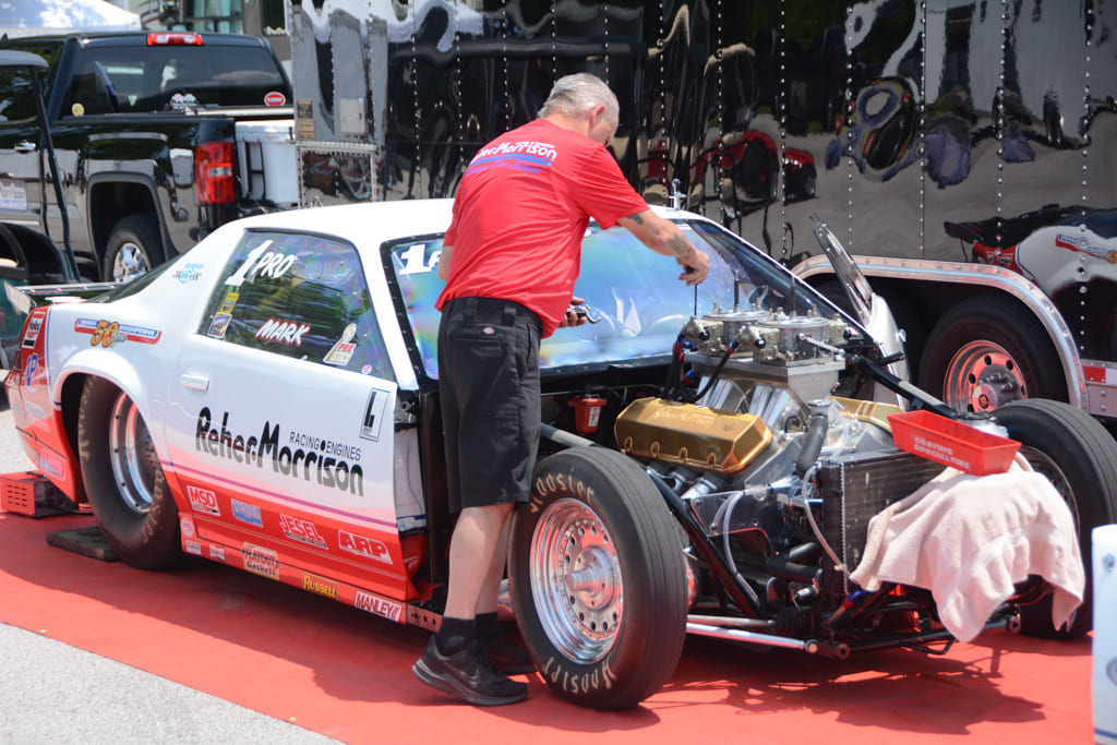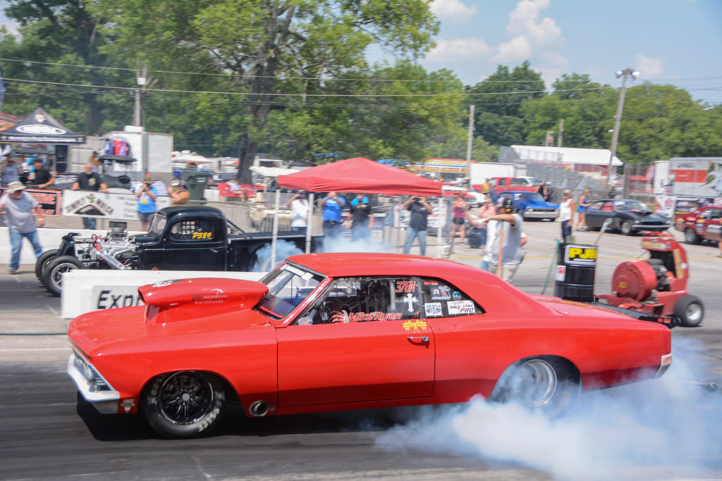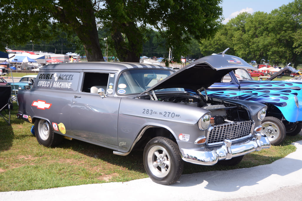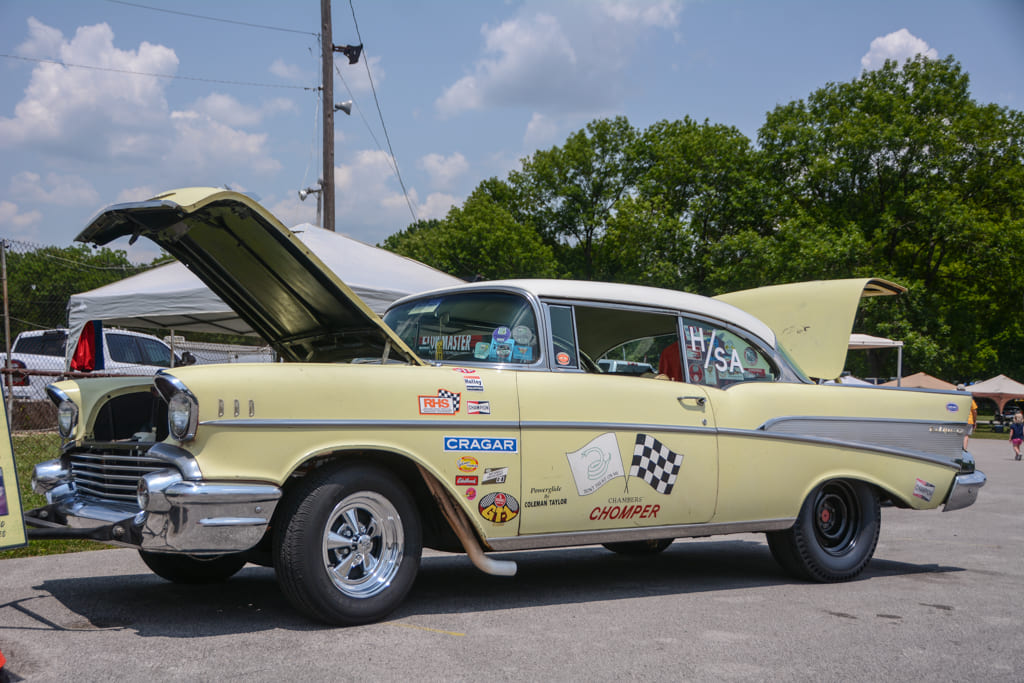 Along with the intense racing action, the Nostalgia Nationals features an awesome Show-N-Shine area with hundreds of entries, ranging from gassers and street freaks to low slung Pro Touring machines. The property at Beech Bend Raceway Park offers rolling hills, shade trees, and plenty of space to set up a tent and chairs for the weekend. The event staff also designates special areas for historic drag cars, including a section of the drag racing pits where “cackle cars” gather and fire up occasionally. We were especially impressed with the two Dick Harrell Camaro Funny Cars in the historic area—the early car being beautifully preserved, and the second-generation car being immaculately restored. Other notable historic cars included Bruce Larson’s USA-1 ’79 Corvette Funny Car, numerous front-engine dragsters and a ’57 Chevy Junior Stocker being flat towed by a matching Nomad.
