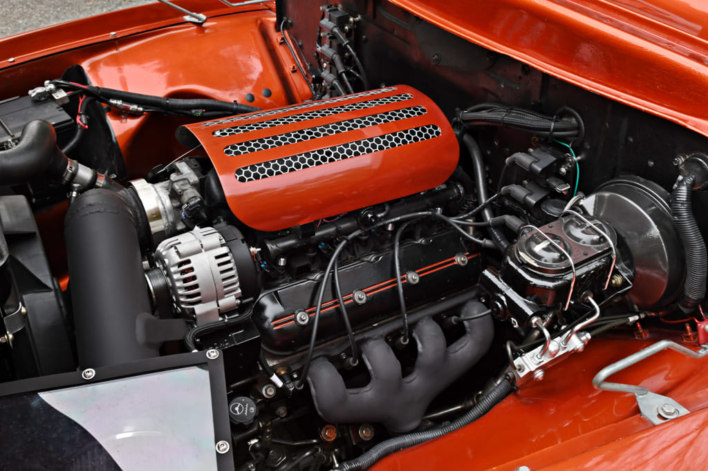 The basics of the build start with the frame. “I used the stock rails and added a Mustang II independent front suspension from Classic Performance Products. The truck has Viking double-adjustable coilovers up front, and a scratch-made, home brewed four-link suspension with Viking coilovers out back.” Tying it all together in the rear is a fully built Ford 9-inch stuffed with 3.70 gears.