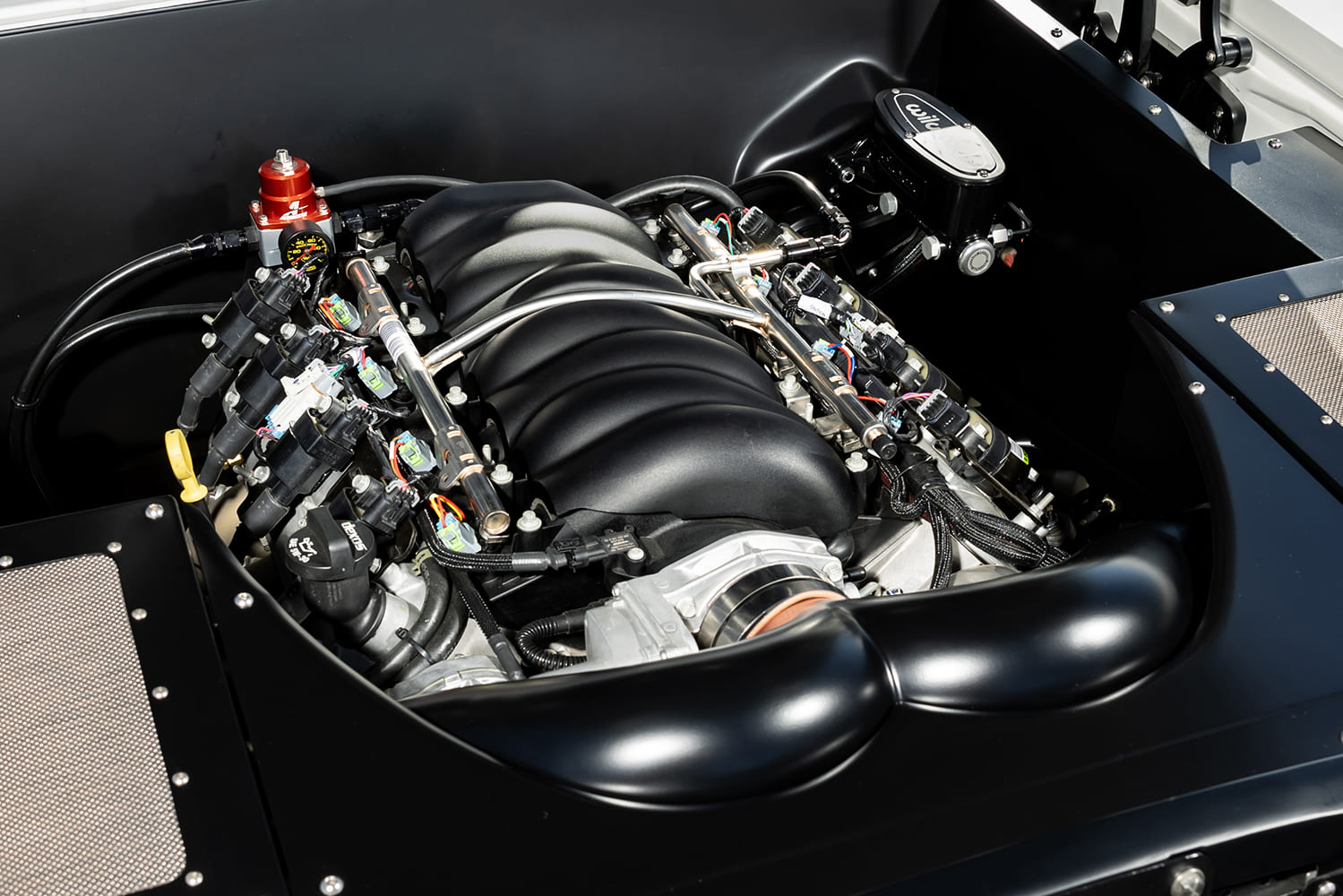 With the car in such tattered disrepair, Lindsay felt it best to start at ground-level by first affixing Detroit Speed and QA1 suspension components to the front section of the original chassis. At the rear, Lindsay created a one-off frame from the A-pillar back and selected a Detroit Speed triangulated QUADRALink and QA1 springs and JRi double-adjustable shocks to make for an ultra-responsive ride quality. Fresh Wilwood braking products and staggered sets of Budnik wheels with Michelin Pilot Sport rubber finalized the suspension overhaul.