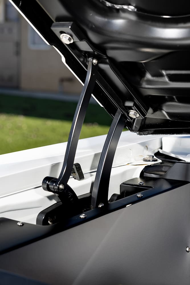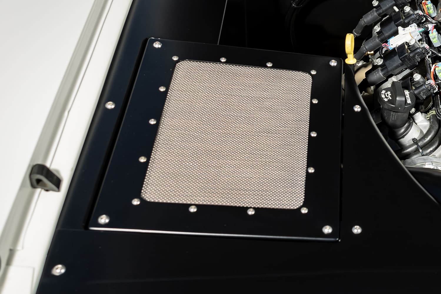 Dress Up: Vintage Air Front Runner accessory drive system, Eddie Motorsport hood hinges