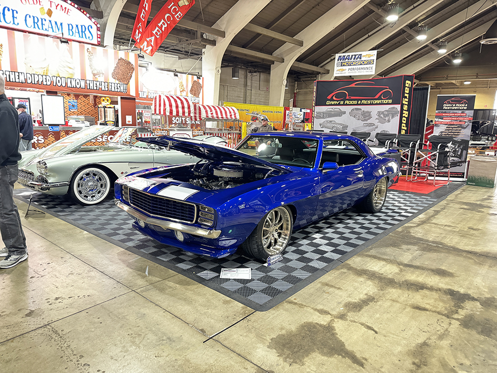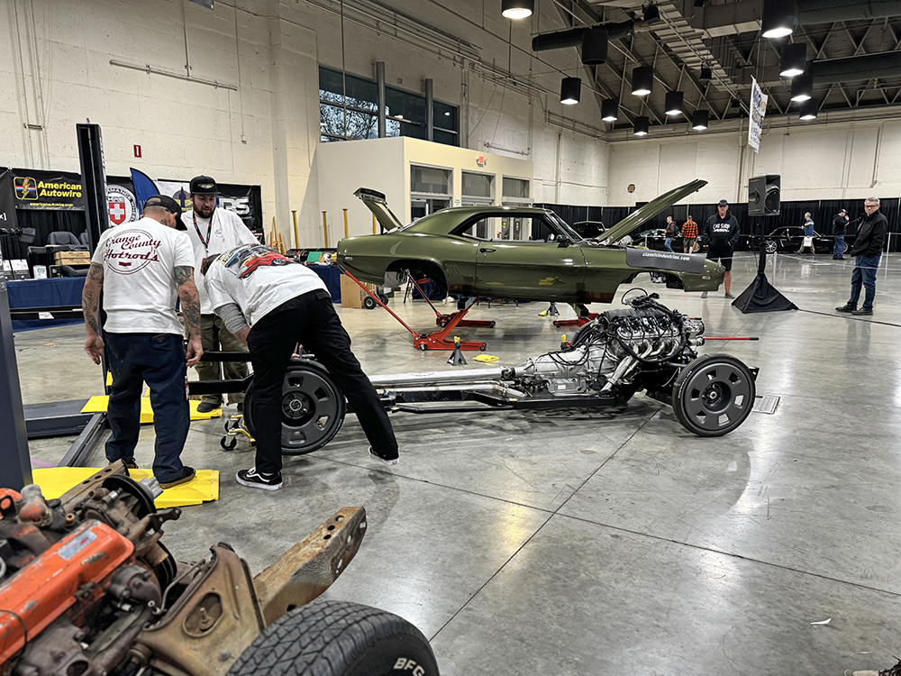 While showgoers were soaking in horsepower from the past, also in Building 9, the crew from Orange County Hot Rods demonstrated how to transform a bone-stock ’69 Camaro into a modern handling and performing muscle car by replacing the stock chassis with an aftermarket chassis armed with modern suspension and brakes in just two and a half days. They also replaced the tired small-block with a modern LS engine, and even gave the interior a complete overhaul, as well. It was an exercise that boasts the many advancements within the aftermarket when it comes to creating superior, bolt-in performance parts designed to improve the ride and functionality of your vintage car while retaining the original style we are all attracted to.