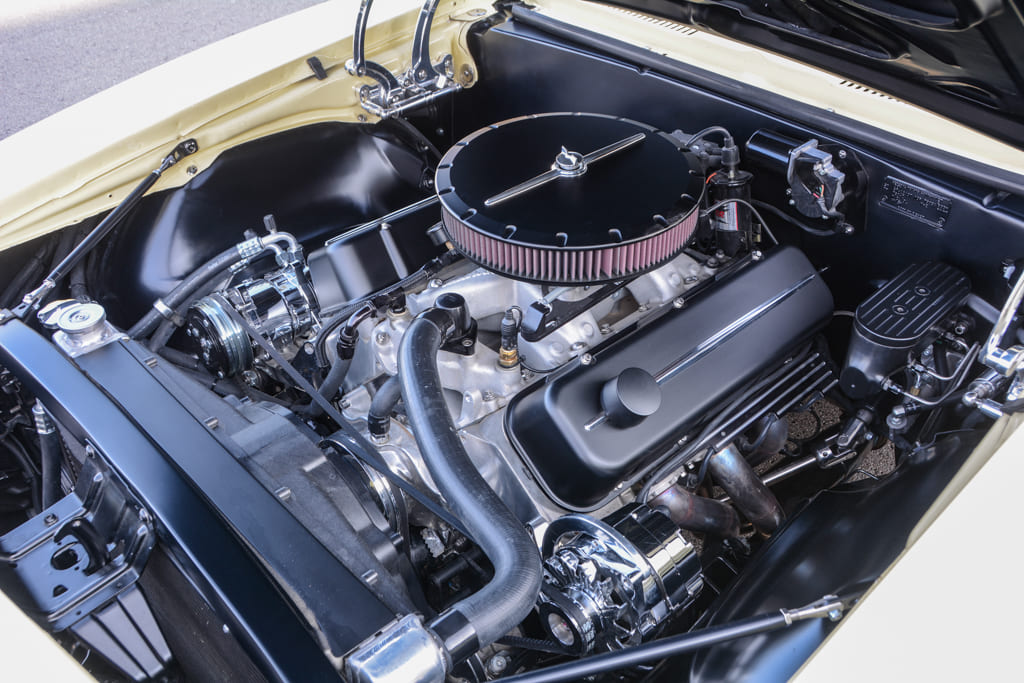 As the years passed, C.L.’s racing days tapered off, but he still had a love for drag racing and early Camaros. He found a new project in 2020 and brought it home from Mississippi. It belonged to the previous owner for 18 years, and another owner for seven years, and it was believed to have been painted more than 20 years ago. C.L.’s best guess is about 28 years, but you’d never know it because the paint quality is great and the car has an awesome overall appearance. The combination of Rally Sport and Super Sport options is always a home run in the Camaro world, and the color scheme of Butternut Yellow with black stripes and a black vinyl top sealed the deal on this new project. The trim tag codes 3L confirmed it was a Rally Sport and 4N confirmed it came from the factory with a 396/325hp big-block, so it’s a pretty rare piece. Despite its factory options, C.L. wanted to update the car with his drag racing style and a healthy big-block while keeping the car’s original exterior appearance.