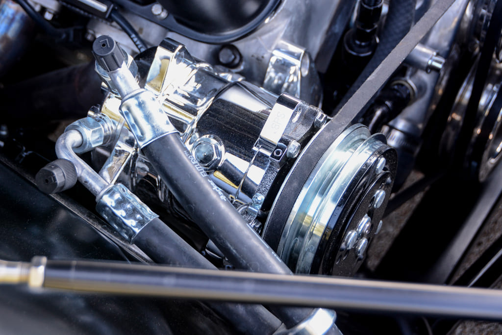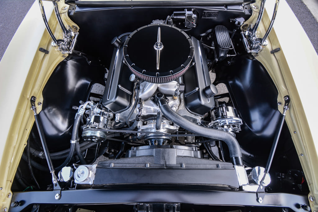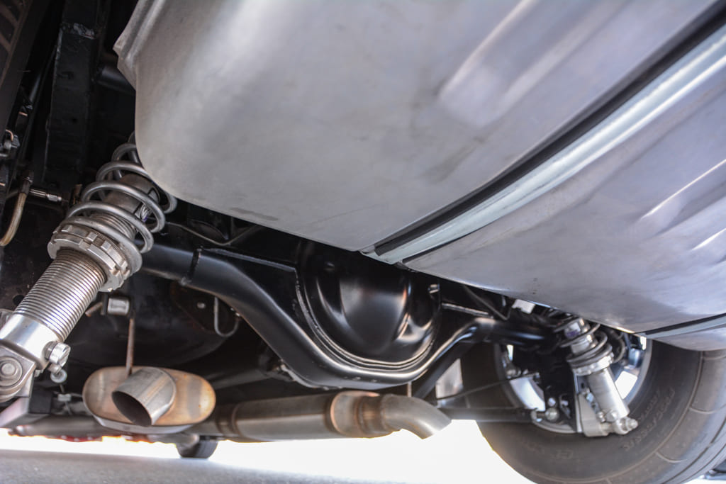 C.L. started gathering parts and sent the car to Kevin Riffey’s Hot Rods in Knoxville, Tennessee, to bring the car into the modern era. Underneath, the car has a Speedtech Performance subframe complete with tubular control arms, Viking coilovers, and Unisteer rack-and-pinion steering. A narrowed 9-inch rearend fits nicely with a Ridetech four-link and another pair of Viking coilovers. Subframe connectors tie it all together. Wilwood brakes roll on all four corners, and C.L. finished off his new chassis and suspension setup with some serious rolling stock, which consists of Billet Specialties Street Lite wheels. Mickey Thompson 295/65R15 radials fill up the wheelwells perfectly and handle nicely on the street.